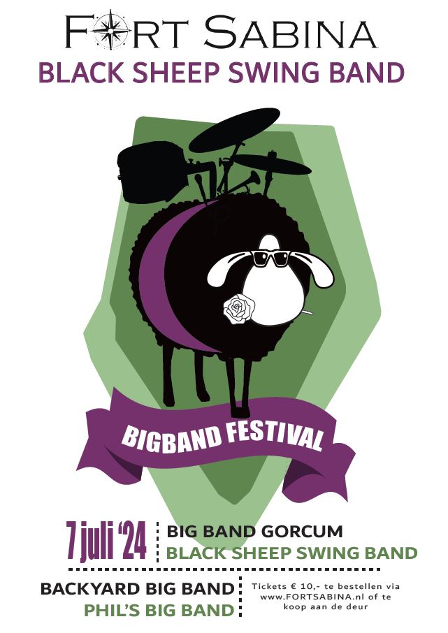 BIG BAND. Tickets te koop op https://tickets.hetfortsabina.nl/event/573 Kinderen t/m 12 jaar gratis.